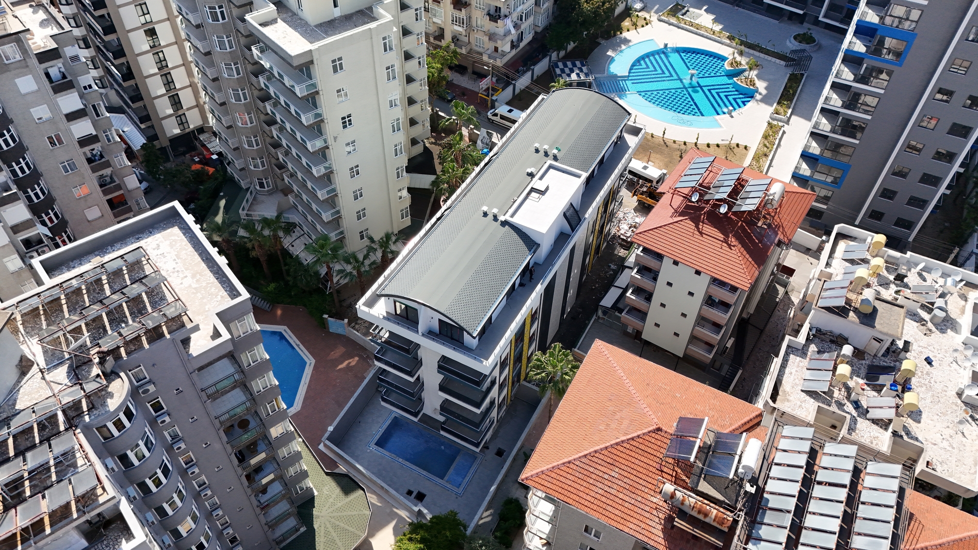 Строительство стартовало в апреле 2023 года на участке земли площадью 788м2. Несмотря на компактность территории, в инфраструктуру комплекса войдут : Открытый бассейн, Детский бассейн, Детская площадка, Игровая комната, Лобби, Сауна, Тренажерный зал, Открытая парковка, Спутниковое ТВ, Генератор, Лифт.