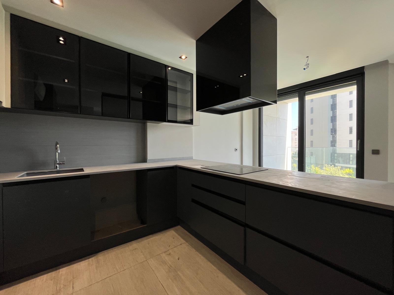 • просторная гостиная с открытой кухней, уже оборудованной встроенной мебелью;