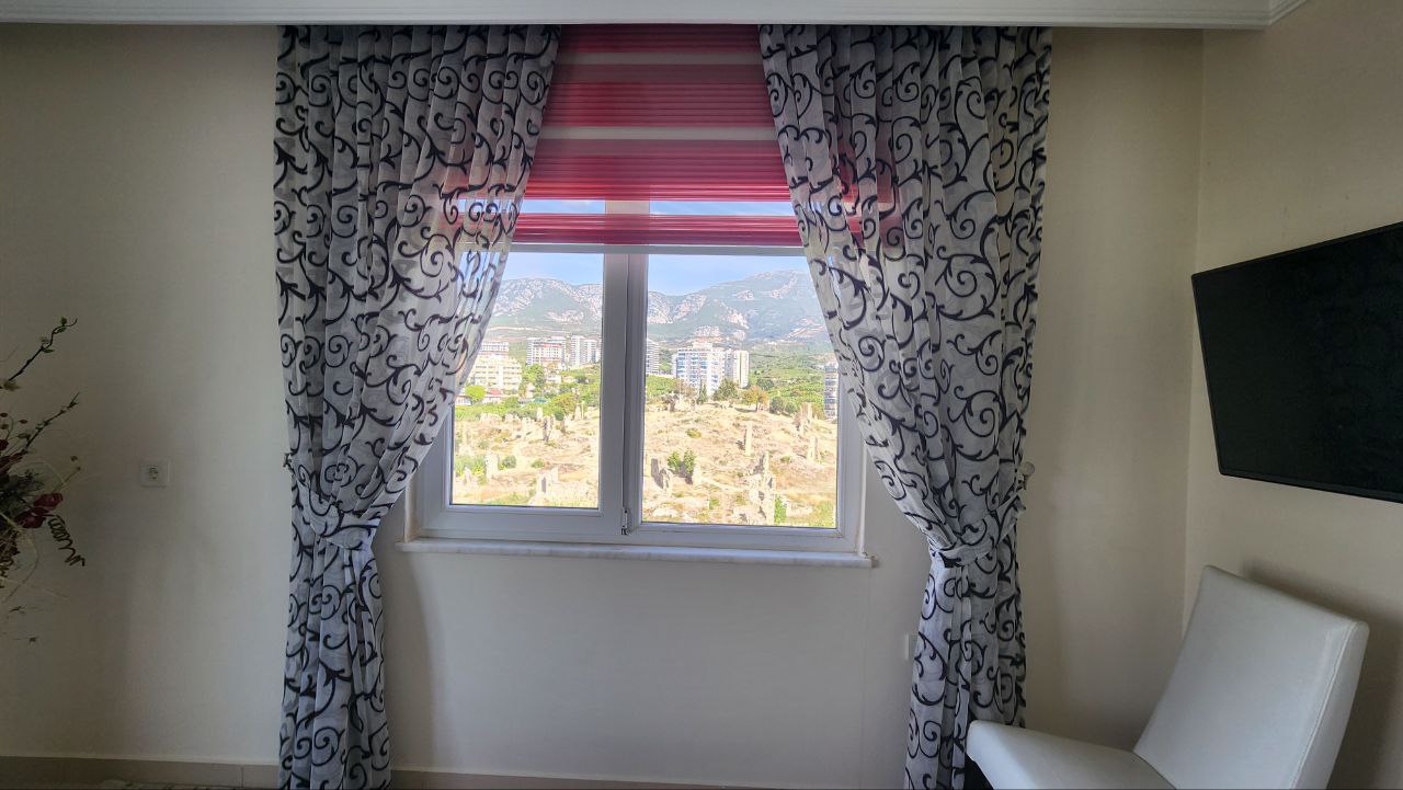 Квартира находится на 9 этаже, выходит на 3 стороны света – юг, запад и север. С каждой стороны открываются красивые виды на море, горы и останки древней крепости Наула.