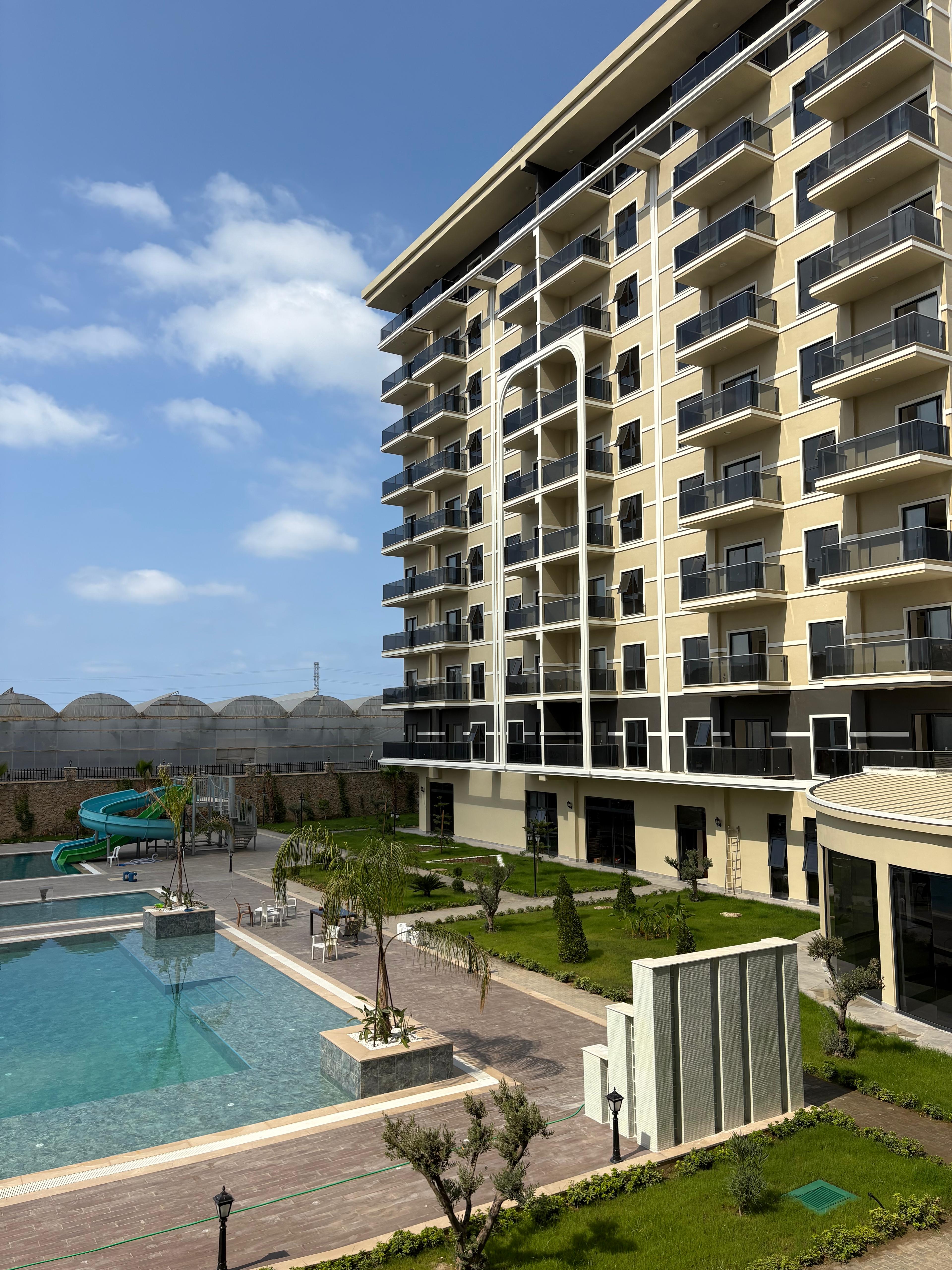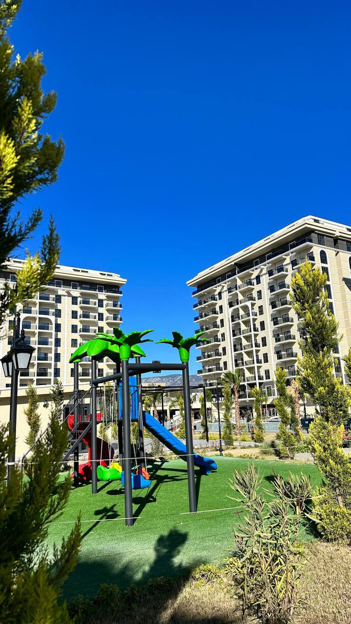 Территория комплекса 15.570м2Расстояние до моря 1 км Бесплатный трансфер до пляжа и центра Махмутлара предусмотрен.