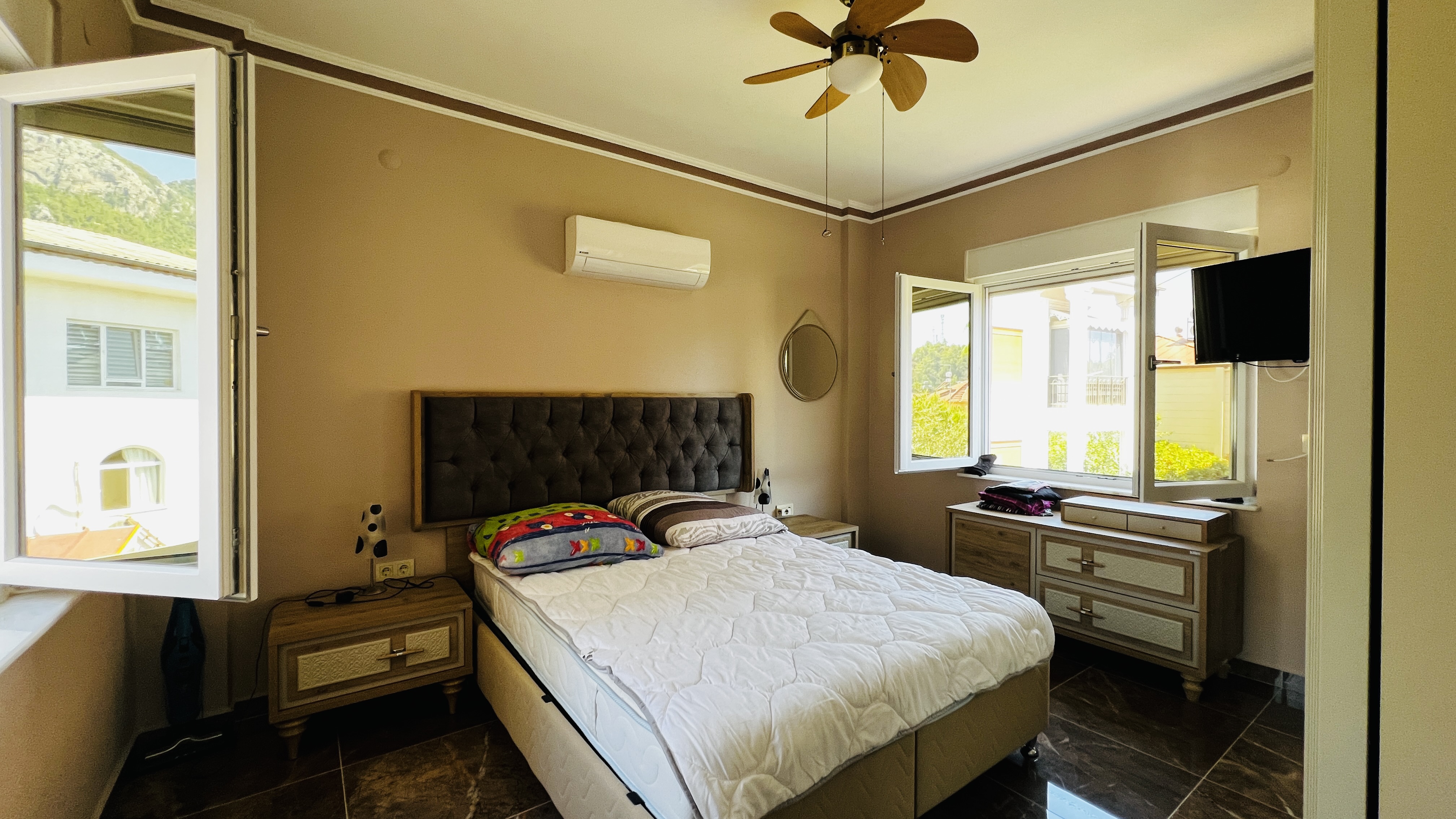 Вилла расположена в тихом месте с великолепным видом на горы, при этом рядом море, природа и инфраструктура. Идеально подходит для семейного отдыха, постоянного проживания или инвестиций.