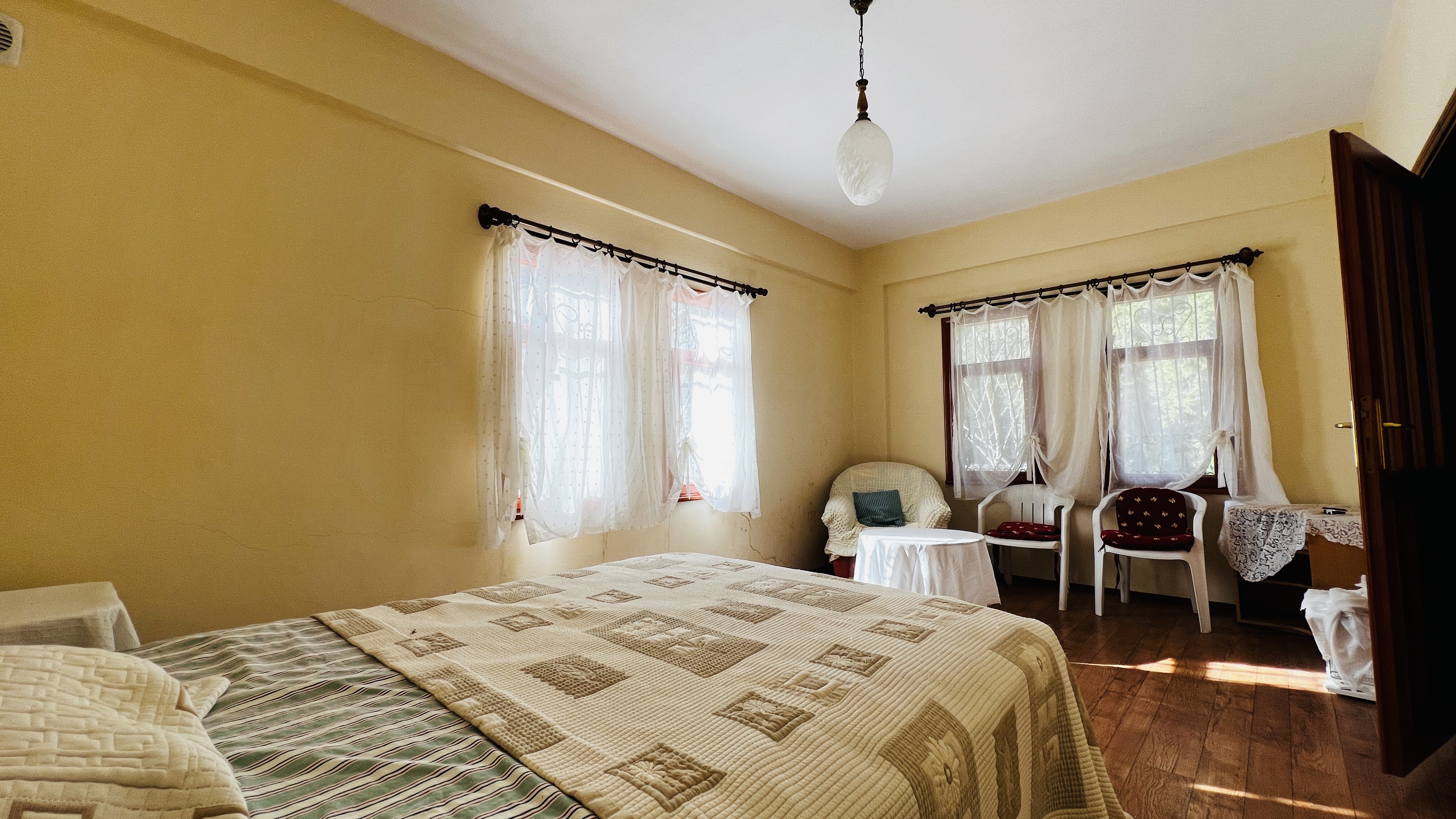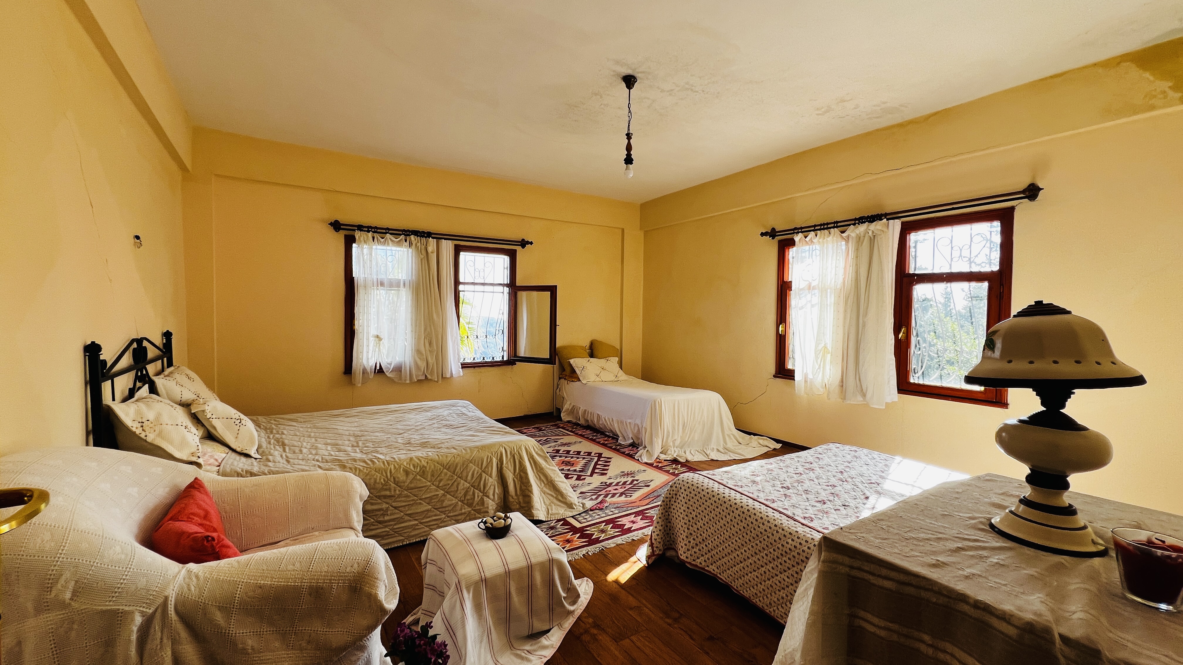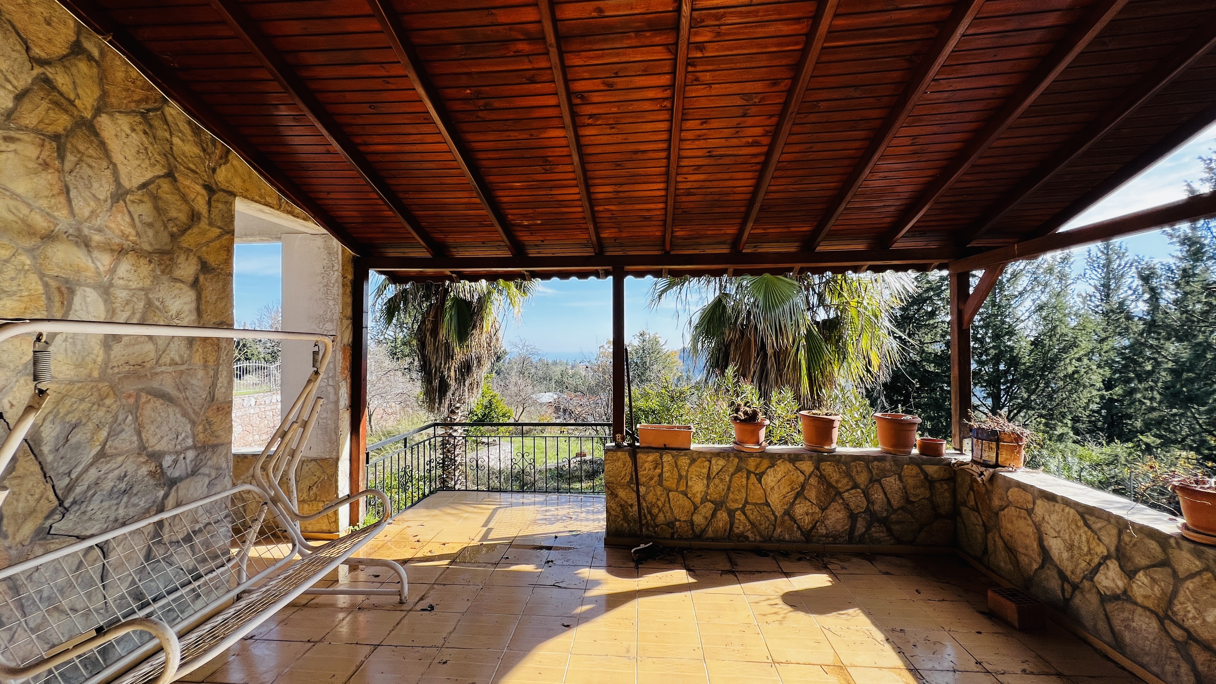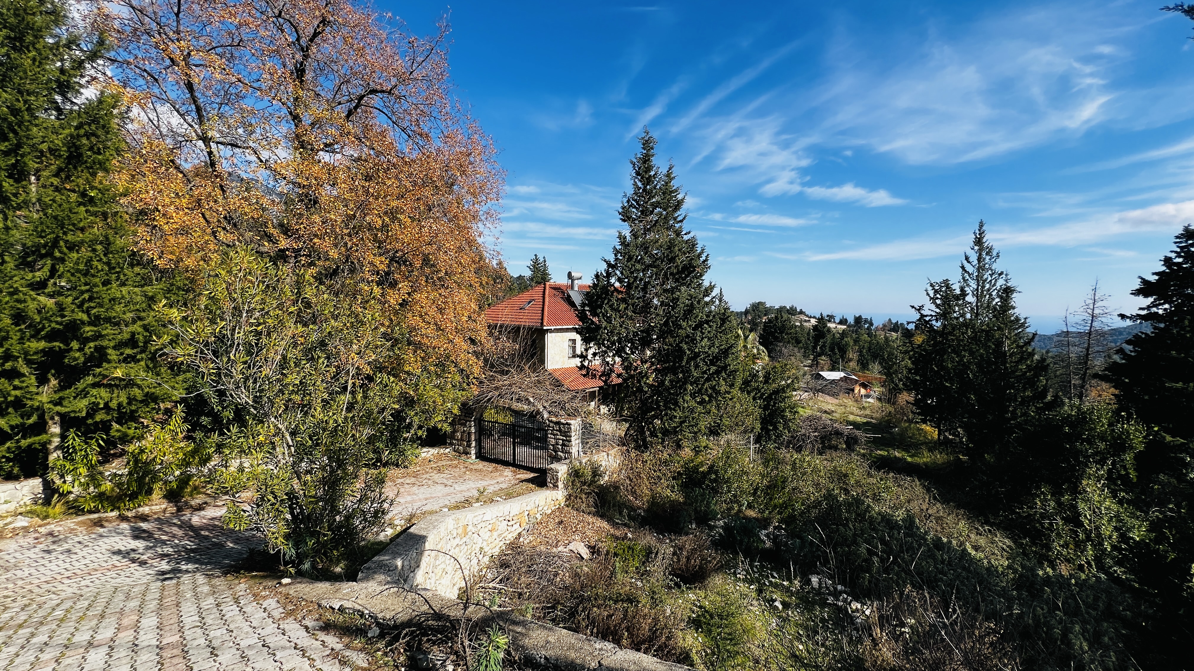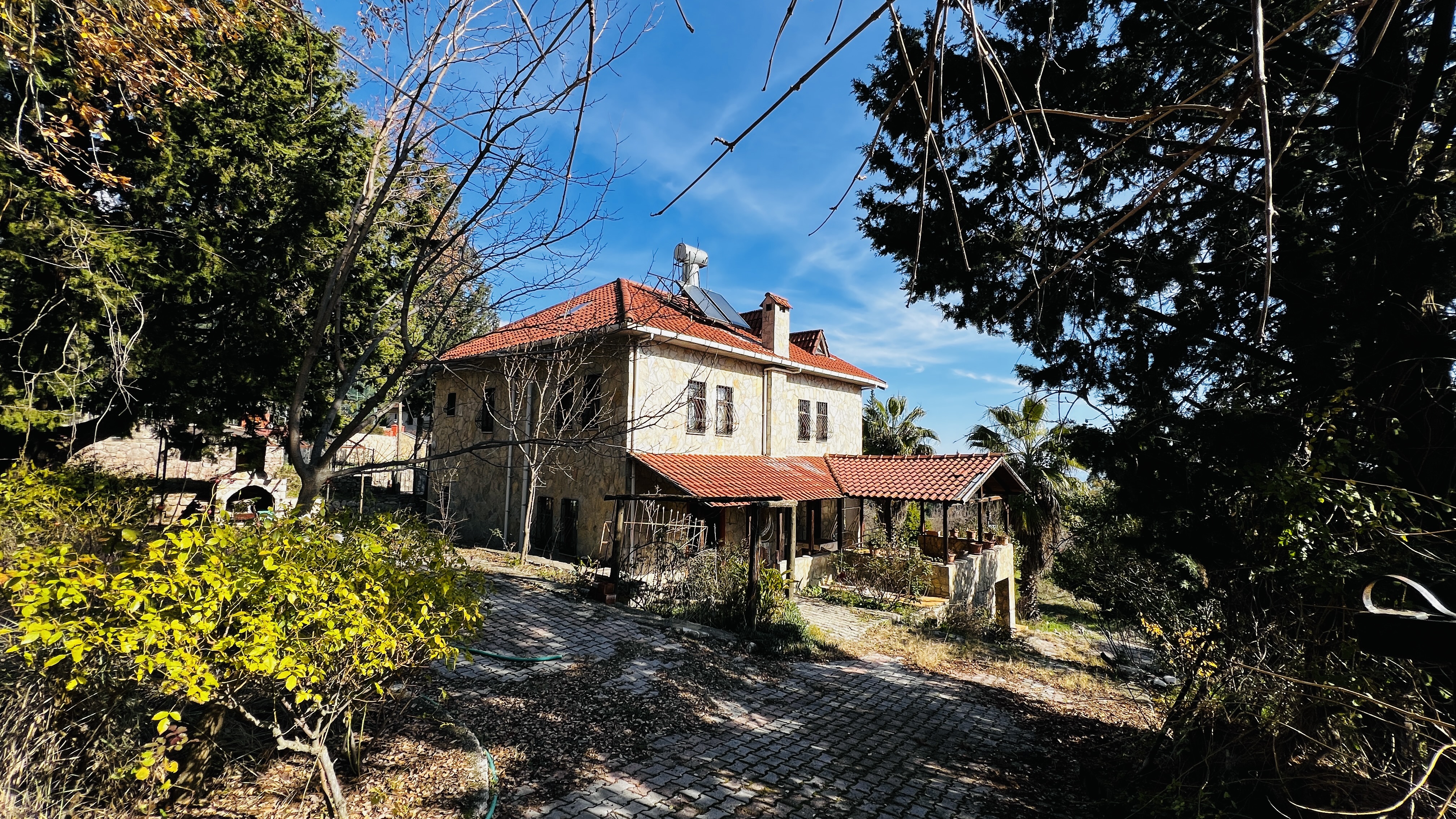 Дом расположен всего в 7 км от моря, 17 км от центра Кемера и 77 км от аэропорта Антальи, что сочетает тишину и природу с удобной транспортной доступностью.