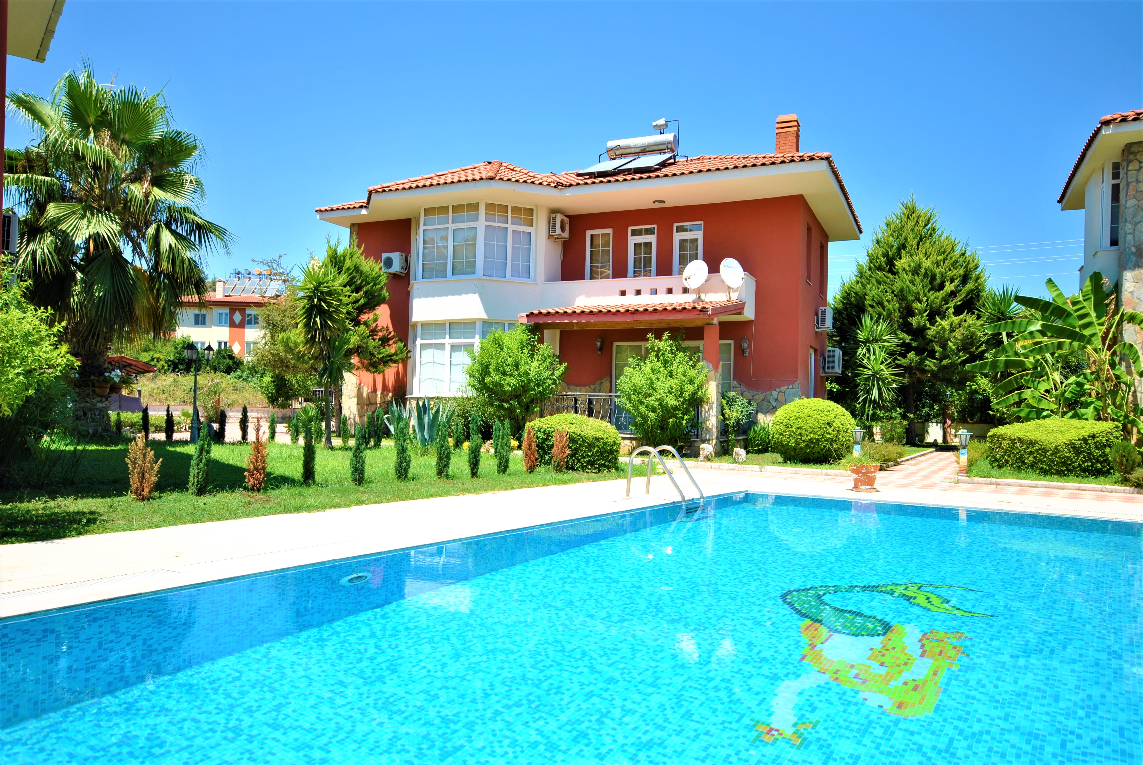 Вилла на продажу в Кемере планировки 3+1, общая площадь виллы составляет 180 м². Комплекс состоит всего из девяти домов, что обеспечивает спокойную атмосферу, на территории предусмотрены два общих бассейна, а также парковка для автомобилей.