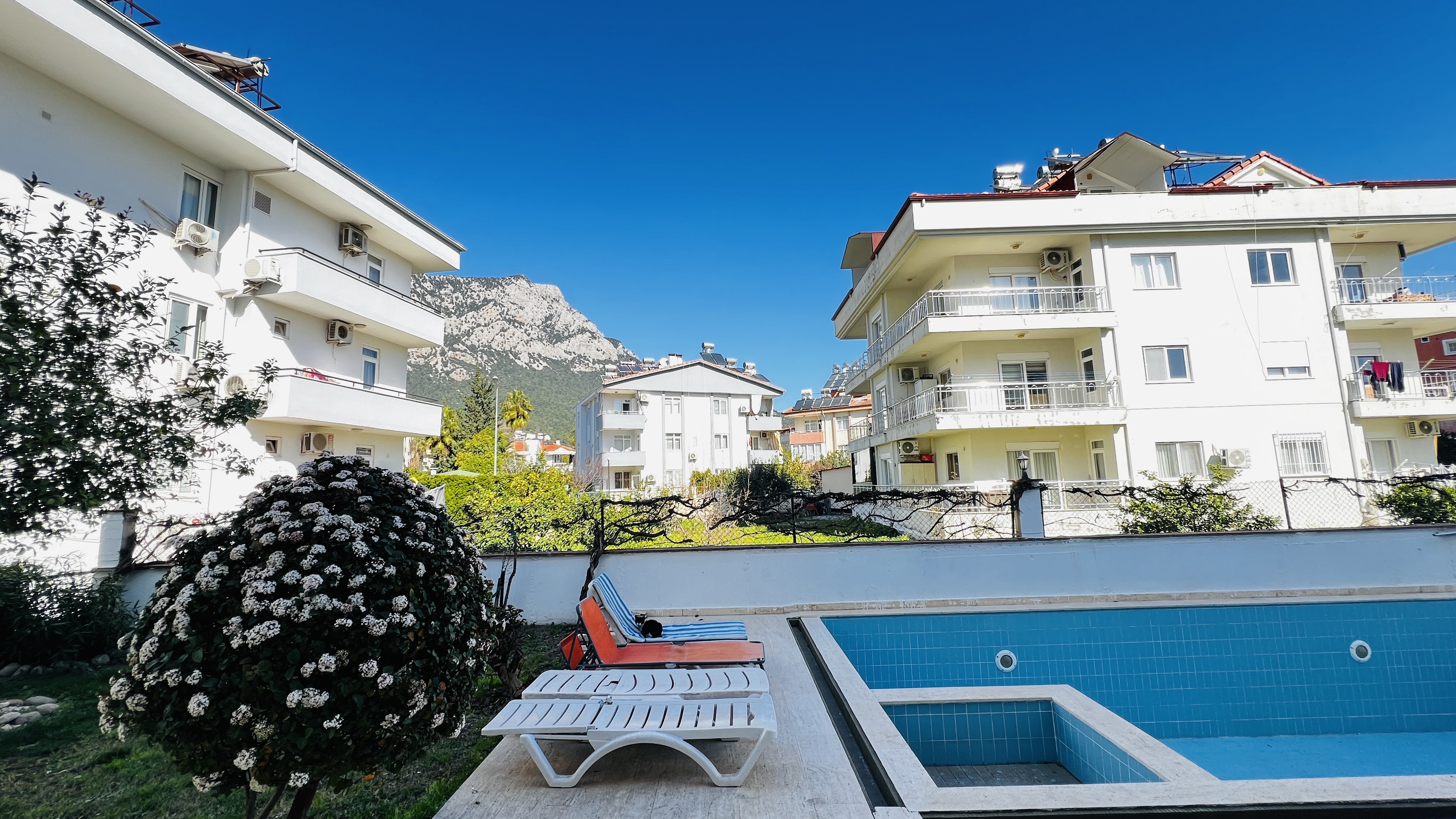 Благодаря продуманной планировке квартира включает просторную гостиную, две спальни, функциональную кухню и ванную комнату. Двухуровневая планировка обеспечивает более комфортное и удобное разделение жилого пространства. Бассейн на территории комплекса и живописный горный пейзаж создают спокойную и приятную атмосферу для жизни.