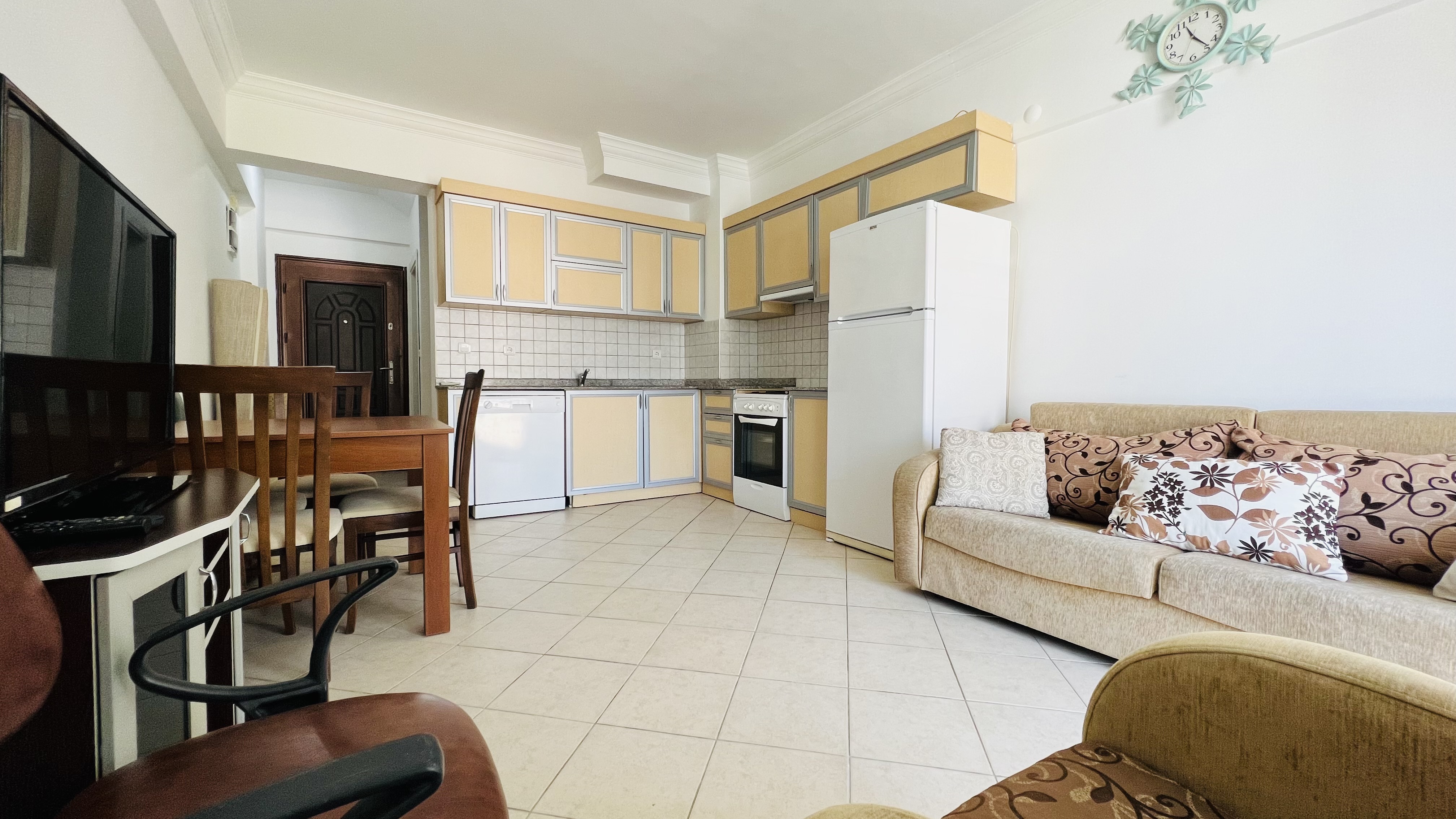С точки зрения расположения квартира на продажу имеет выгодное местоположение: 4 км до моря, 3 км до центра Кемера, 60 км до аэропорта и всего 100 метров до супермаркета. Близость к магазинам, школам и общественному транспорту делает эту квартиру привлекательным вариантом как для инвестиций, так и для собственного проживания.